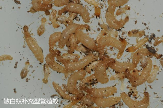 稱為補(bǔ)充繁殖型。白蟻群體久居住在一個(gè)地方,常造成食料不足,迫使部分工蟻和少量兵蟻離開(kāi)主群體遠(yuǎn)去尋食找水。隨著時(shí)間推移和距離的遠(yuǎn)離,再加上其它外界因素的影響,結(jié)果使它們與主群體完全失去聯(lián)系。這時(shí)它們即組成小群體,然后群體內(nèi)部就能產(chǎn)生補(bǔ)充型蟻王和蟻后,而成為獨(dú)立群體。另外,當(dāng)原始蟻王、蟻后死亡后,短翅型蟻王、蟻后作為補(bǔ)充出現(xiàn),延續(xù)整個(gè)白蟻群體的繁衍。