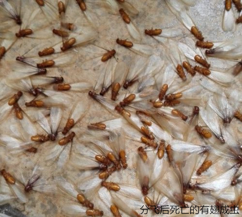或有翅型:體軀骨化,黃、褐或黑色,有兩對(duì)發(fā)達(dá)的翅。每年4-6月是其分飛高峰期,特別是在春夏雨后悶熱時(shí),大量長(zhǎng)翅繁殖蟻從蟻巢中飛出,在離巢不遠(yuǎn)處的建筑物附近低飛,飛行時(shí)間很短,這種現(xiàn)象稱為婚飛或群飛(分群)。群蟻在低空飛舞,好像在開(kāi)舞會(huì),各自毫無(wú)拘束地自由選擇對(duì)象。"情投意合者"飛落地面,各自脫掉翅膀,雌雄成雙追逐,通常為雌前雄后,完成"婚配"大事。配對(duì)后的雌雄成蟲(chóng)經(jīng)一段時(shí)間后,便開(kāi)始尋找合適場(chǎng)所,建筑新巢"定居"。入穴后,雄蟲(chóng)常用口器舔舐雌蟲(chóng)的腹部,有時(shí)雌雄蟲(chóng)彼此舔舐,然后產(chǎn)卵,繁殖后代,另立新的群體。這對(duì)"新婚"的雌雄蟻,就是未來(lái)新群體的母蟻和父蟻,也就是新群體中的蟻后和蟻王。大多情況下,這對(duì)伴侶終身過(guò)著"一夫一妻制"的文明社會(huì)生活。但不是婚飛中的所有個(gè)體都能成雙建立新群,當(dāng)它們大量飛出時(shí),常被各種鳥(niǎo)類、捕食性昆蟲(chóng)或其他動(dòng)物吃掉,往往只有其中的少數(shù)能夠幸存下來(lái),但盡管是少數(shù),也足以維持其種族繁衍,并造成對(duì)木質(zhì)建筑物的危害的了,王后躺在王室中可是專門(mén)"生育"的,到一定時(shí)期又有成蟲(chóng)出飛建立新的群體。