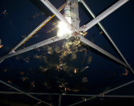 (3)在大雨來臨時(shí)或者悶熱天氣里,發(fā)現(xiàn)長翅蟲子室內(nèi)成群飛翔;或在傍晚,發(fā)現(xiàn)有翅的蟲子在室內(nèi)燈下大量聚集飛翔。這說明屋中有蟻或是新蟻分飛進(jìn)屋。